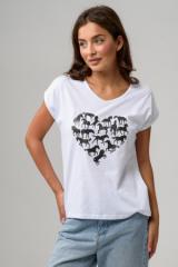Наименование:15113 Футболка 8041 Цена: 100 руб. Описание: Футболка полуприлегающего силуэта, средней длины, с округлой горловиной. Рукав цельнокроеный, короткий, на манжете с отворотом. Полочка украшена эффектной печатью с пайетками