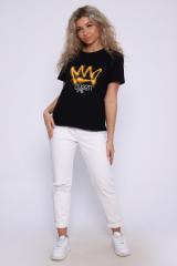 Наименование:17428 Футболка 24825 Цена: 230 руб. Описание: Футболка женская с ярким принтом в виде надписи, которая переводится как самая красивая, из мягкого 100% хлопка Круглая горловина, цельнокроеный рукав обработан широким манжетом. Модель свободного покроя, удобная, стильная, отлично сочетается с джинсами, брюками, юбкой, шортами.