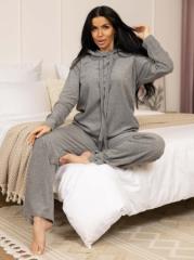 Домашний махровый костюм, идеальный выбор для прохладной погоды. Толстовка свободного силуэта с капюшоном и длинным рукавом, брюки прямого кроя с карманами в боковых швах.