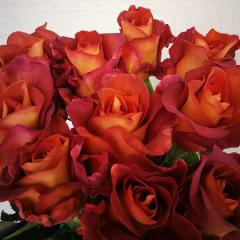 Описание: Чайно-гибридная. Роза необычного цвета. Куст сильнорослый, прямостоячий, компактный, высота 70-90см. Листья темно-зеленого цвета, блестящие. Цветы имеют форму бокала, крупные, 8-10см в диаметре. Внутренняя сторона лепестков имеет оранжевый цвет, внешняя сторона винно-красная. Имеет легкий аромат с фруктовыми нотками. Цветёт с конца июня до первых заморозков. Светолюбива, предпочитает солнечные места, достаточно засухоустойчива. Зимостойкость - высокая. Поставка: весна 2026г.