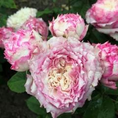 Наименование:R085 БУКЕТ ПАРФЕ Цена: 250 руб. Описание: Мускусный гибрид. Роза имеет кремовый с розовым румянцем цвет. Высота куста как правило составляет около 120-150см. Ширина порядка 150 см, бывает больше но довольно редко. Непрерывно цветущий куст. Густомахровые кремовые цветки с нежно-розовым дыханием появляются в крупных сферических кистях на крепких цветоносах. Каждая кисть выглядит как настоящая цветочная аранжировка. Очень сильный и морозостойкий сорт. Каждое соцветие этой сильнорослой розы - настоящий букет, так плотно прижаты друг к другу отдельные цветки. Они появляются из пухлых круглых бутонов и напоминают пионы, только гораздо мельче, около 5см в диаметре. Окраска изменчива. Чаще всего цветки молочно-белые с розоватым оттенком, особенно по краю. В прохладную погоду образуются розовые цветки. Благодаря легкому аромату мускуса эта роза хороша в срезке. Окраска цветков гармонирует со многими другими срезочными цветами. Прямостоячий куст одет ярко-зеленой листвой.